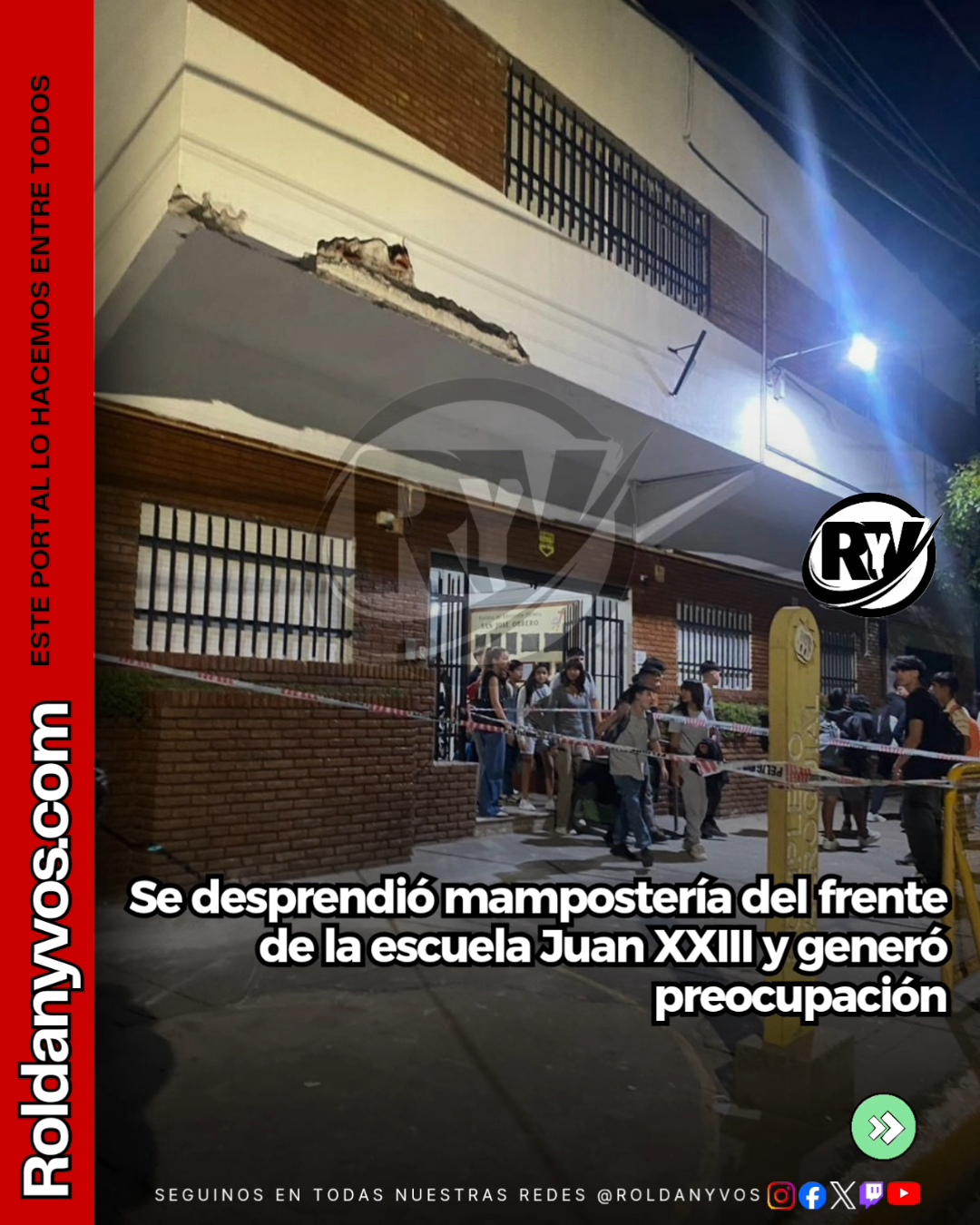 Roldán: se desprendió mampostería del fr…
