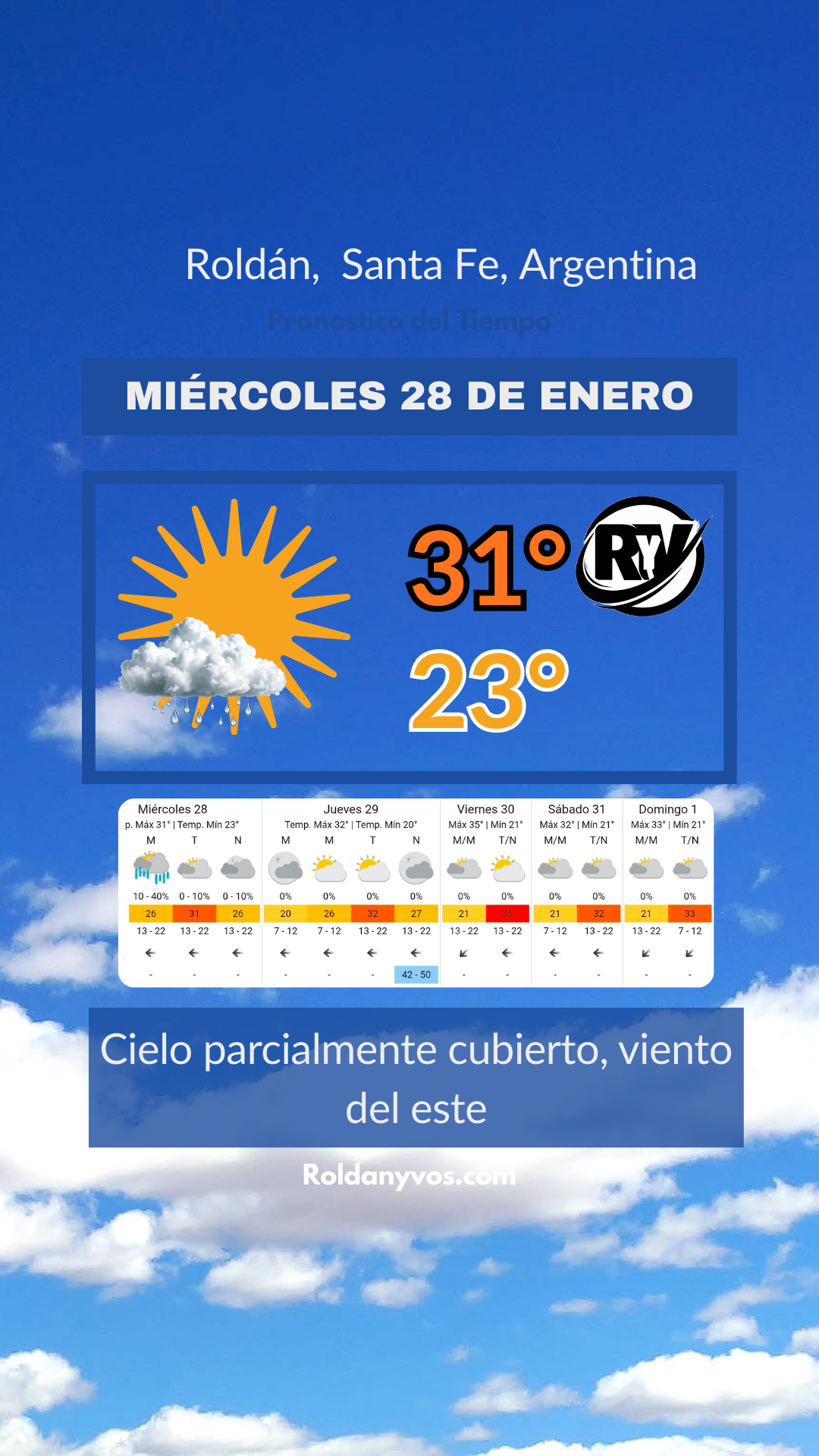 👉🏻Mitad de semana y el verano está en su mejor momento!! ✅️ El @smn_argentina nos adelanta para hoy, Miércoles 28 de enero que tendremos una jornada parcialmente nublada, con una temperatura…