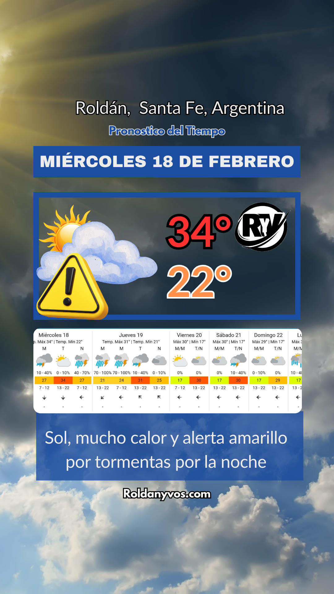 Miércoles 18 de Febrero, mucho calor y Alerta Amarillo