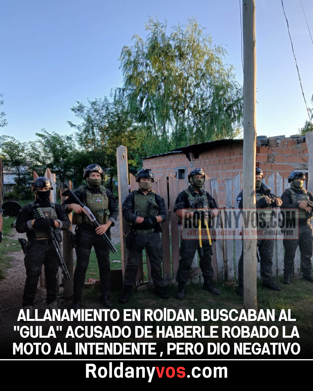 #allanamiento en #Roldan - La búsqueda del Famoso "Gula" quien le robo la moto al Intendente, dio negativo- Síguen las investigaciones pic.twitter.com/0enwY1tk0s