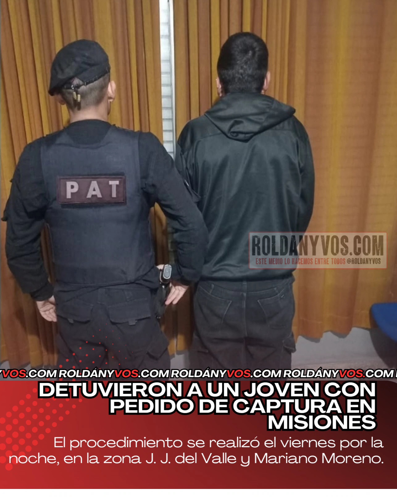 Un operativo de la Policía de Acción Táctica (PAT) culminó en la detención de un hombre que era buscado por la Justicia de Misiones. El procedimiento se realizó el viernes por la noche, alrededor de las 20:50, en la zona de General J. J. del Valle y Mariano Moreno, en Roldán.