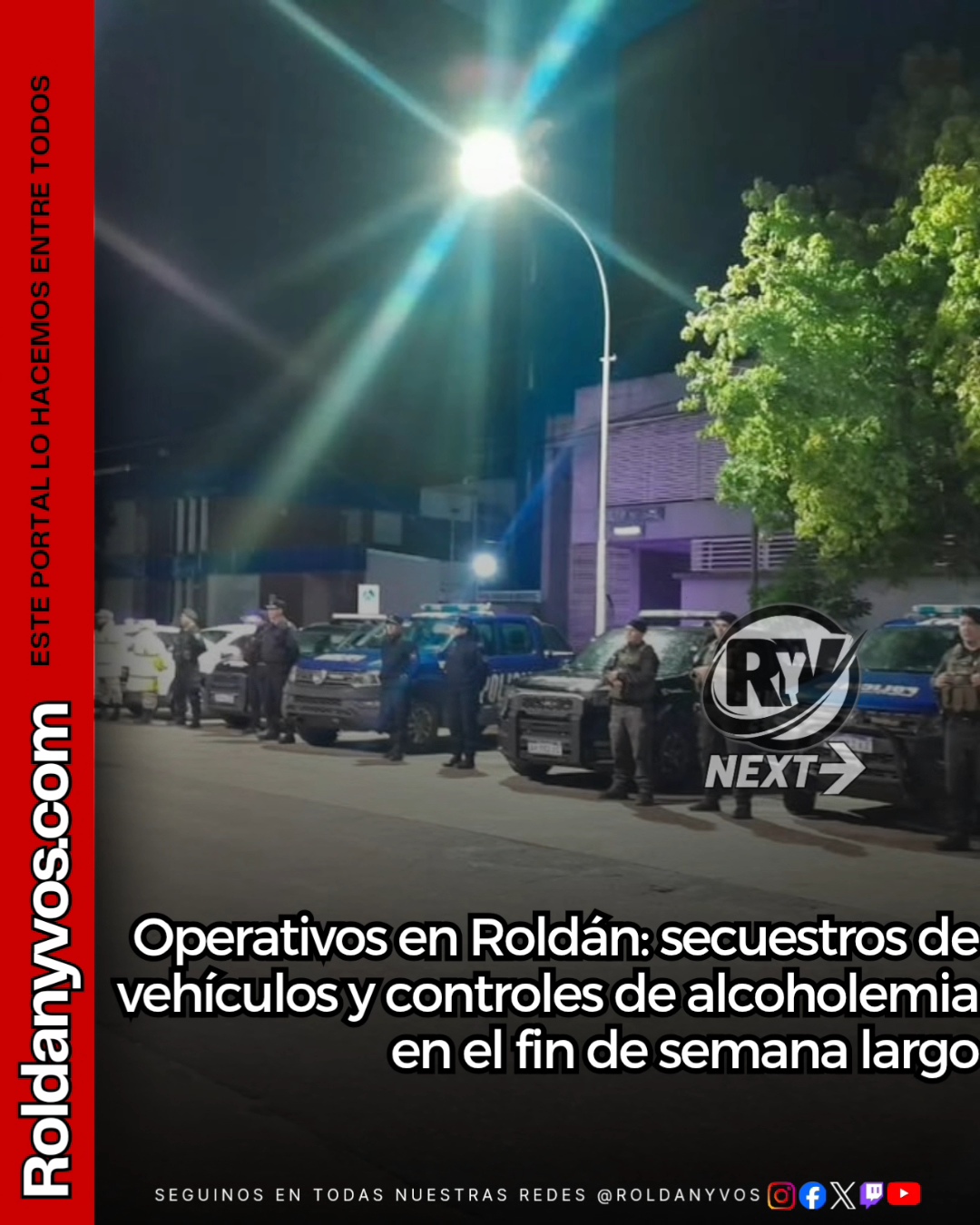Durante el fin de semana largo se llevaron adelante distintos operativos de control vehicular y saturación en la ciudad de Roldán, articulados entre la Subsecretaría de Seguridad y Control y las fuerzas provinciales.