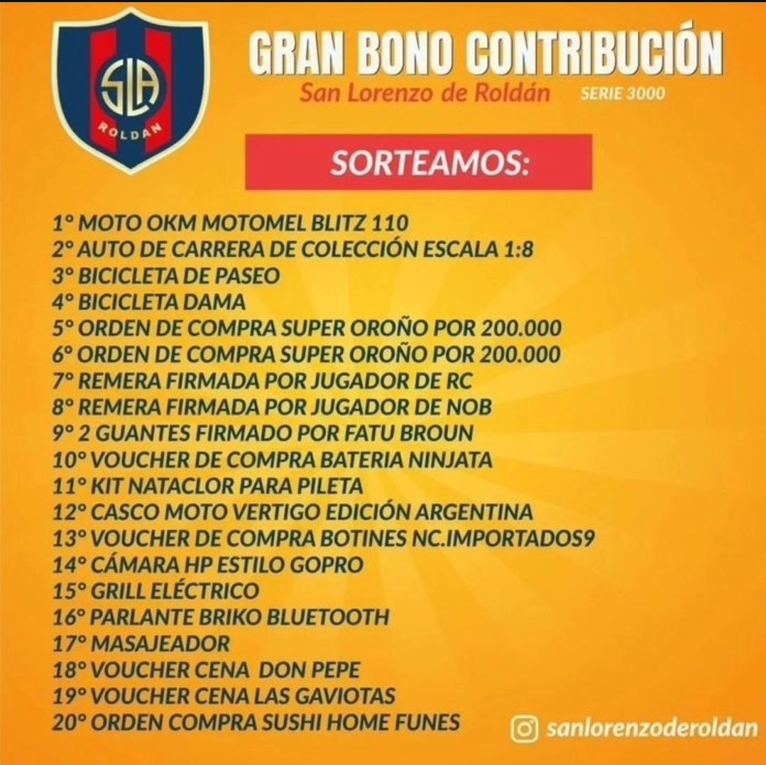 #roldan #roldán #noticias #BONO #sorteo #contribución #sanlorenzo #sorteo #premios #regalos #suerte #futbol