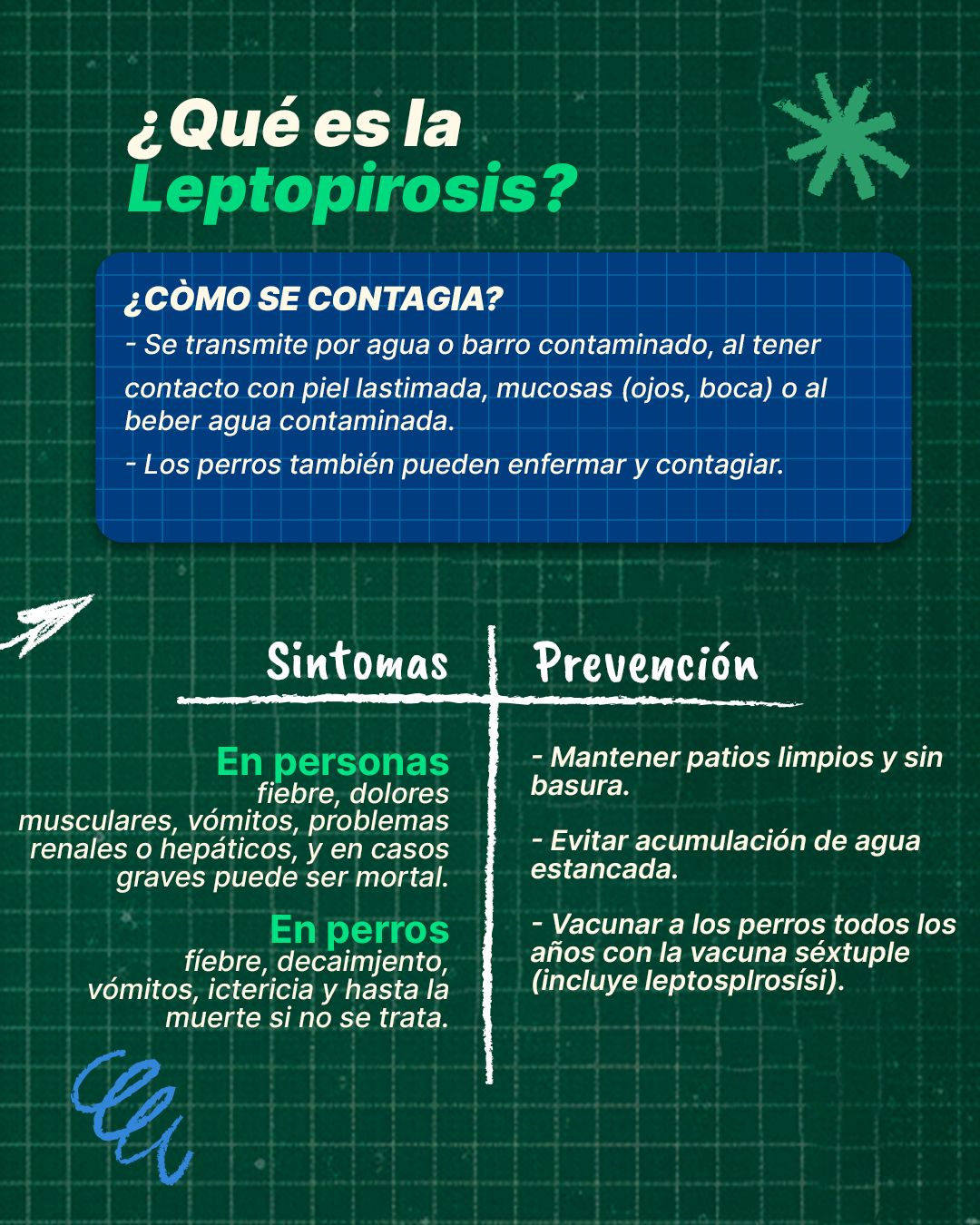 La leptospirosis es una enfermedad infecciosa provocada por la bacteria Leptospira, que puede transmitirse a través del contacto con agua, tierra o alimentos contaminados por la orina de animales infectados, especialmente roedores. Las personas que se exponen a estas condiciones, como en áreas inundadas o con acumulación de basura, son más susceptibles al contagio.