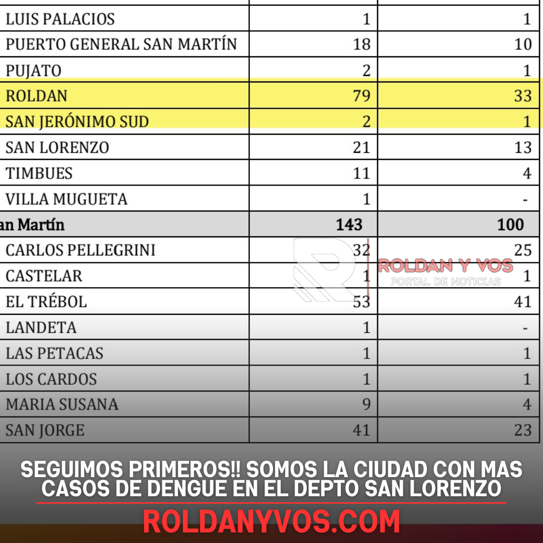 👉 El avance del Dengue en la ciudad es muy preocupante, según el informe del Ministerio de la Provincia de Santa Fe, Roldan pasó de 50 casos a 79 y los casos activos pasaron de 17 a 33 en una semana, casi el doble de casos!