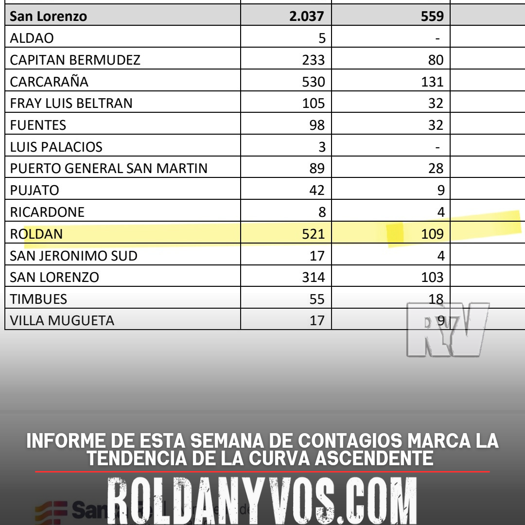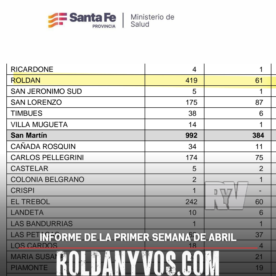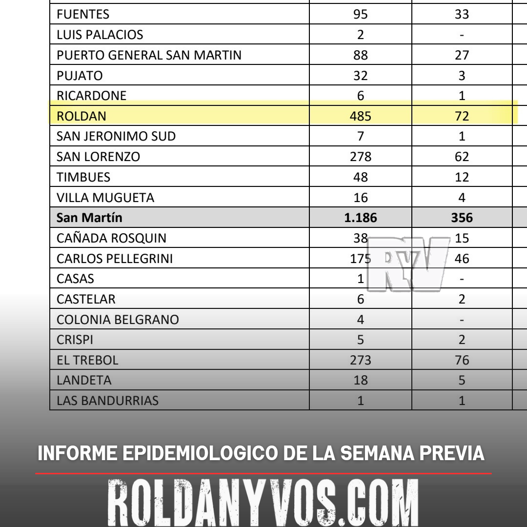 🦟 A pesar de que la Provincia da indicios de que los Contagios están a la baja, Roldán aumenta los casos.