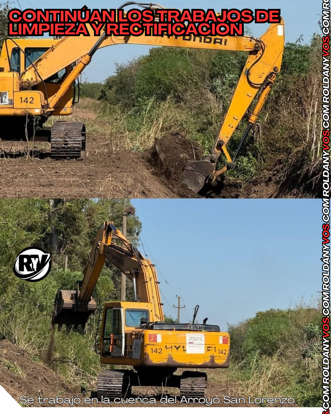 🚧 Continúan los trabajos de limpieza y rectificación de desagües en la cuenca del arroyo San Lorenzo.