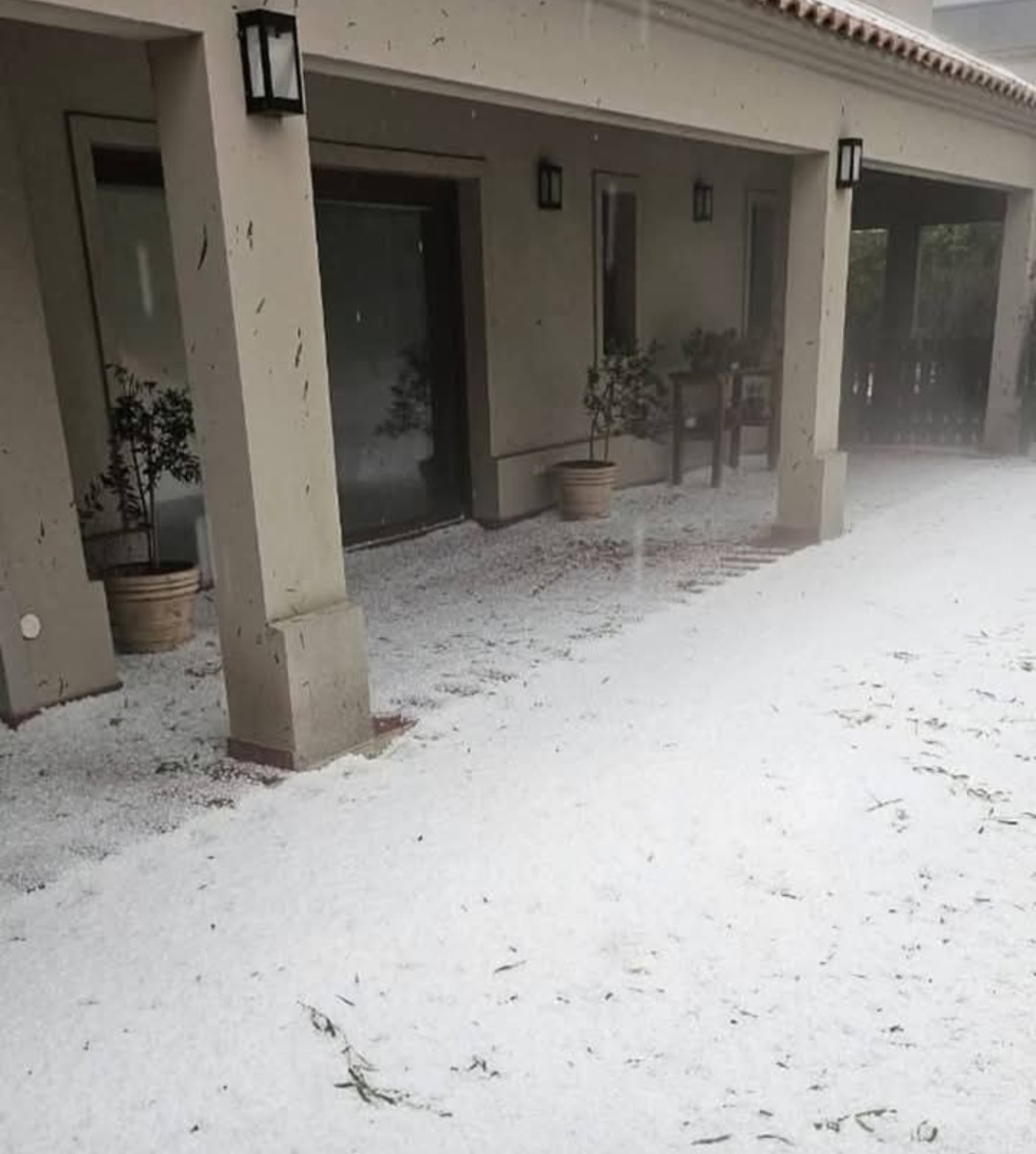 Granizo acumulado de hasta 20 cm, calles blancas y destrozos en minutos.