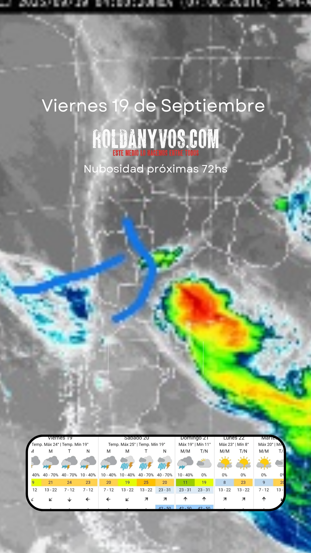 ▶️ Para el resto de la jornada, tormentas y lluvias, máxima de 24°, para la tarde noche el viento rota al sur con fuerza, y el domingo será una jornada ventosa...máxima de 19°.