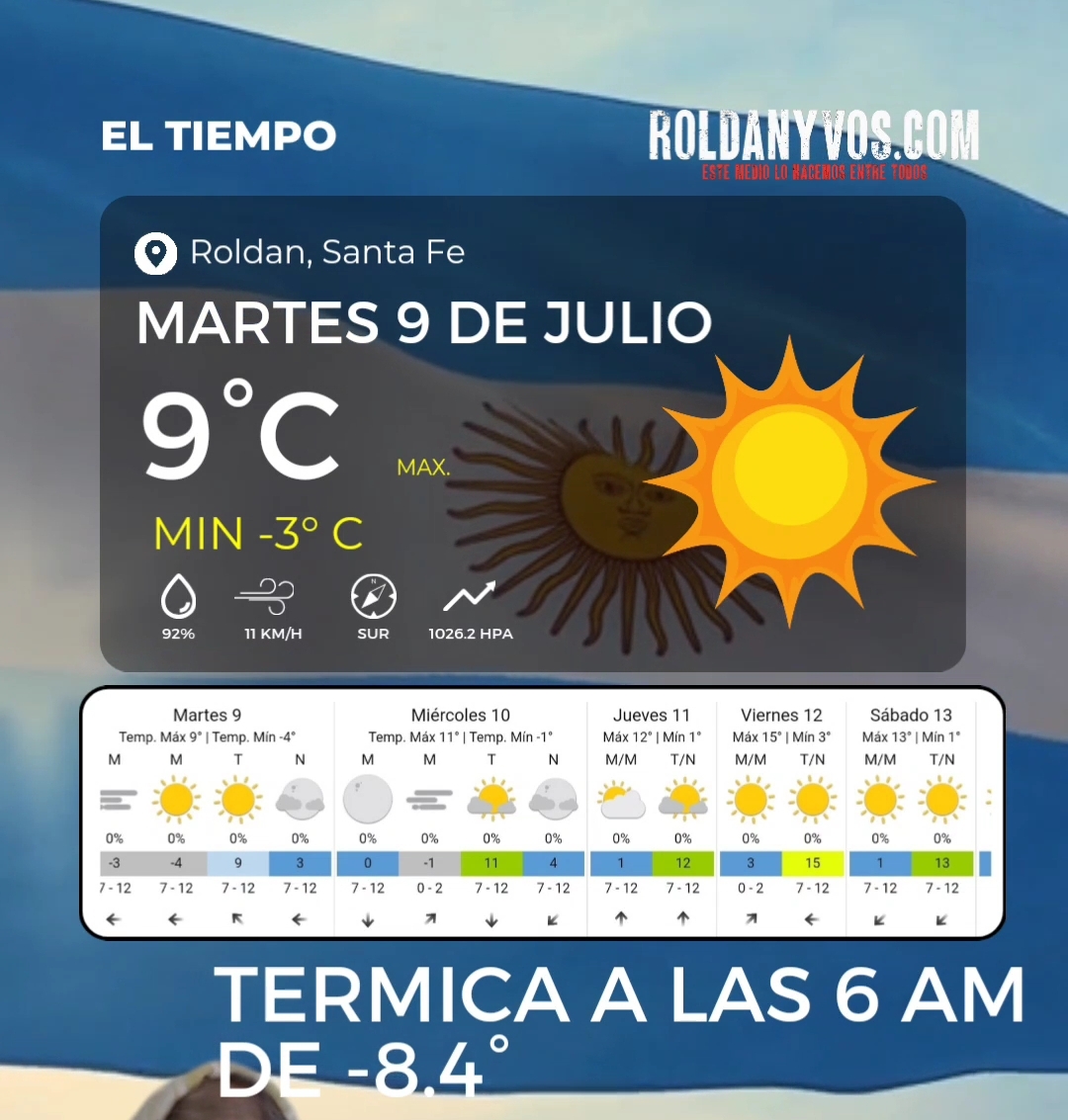 ¡Buen día! ☀️ Arrancamos este viernes 7 de febrero en Roldán, Santa Fe con una jornada calurosa.